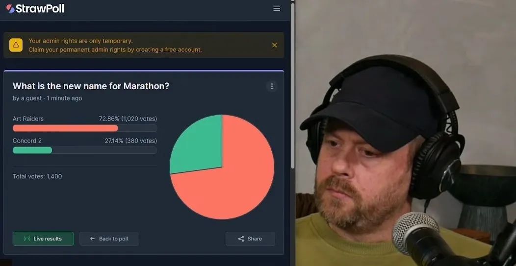 海外社區還發起了一場玩梗的投票:你覺得該給《馬拉松》起個什麼新名字?除了上面的“藝術掠奪者”,還有不少人乾脆建議Bungie和索尼改口叫它《星鳴特攻2》得了。