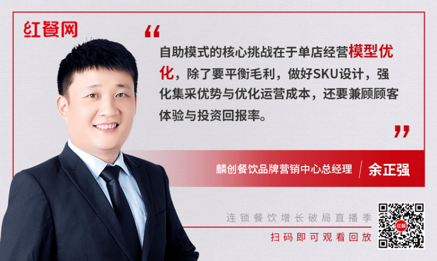 而自助模式的核心挑戰在於單店經營模型優化,除了要平衡毛利,做好SKU設計,強化集採優勢與優化運營成本,還要兼顧顧客體驗與投資回報率。