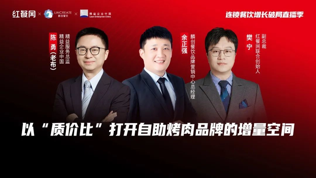 為此,在本季第三期的直播中,紅動食刻邀請到麟創餐飲集團品牌營銷中心總經理餘正強以及精益企業中國、精益服務總監陳勇(老布),共同探討“以‘質價比’打開自助烤肉品牌的增量空間”這一話題。
