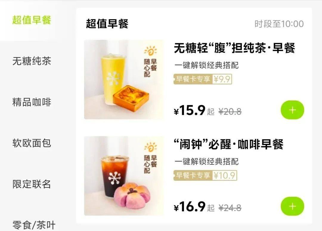 也就是説,開通權益卡之後,如果消費者想在早餐套餐中吃到更豐富的烘焙品,需要加價3-6元,以往9.9元就能搞定的套餐,現在可能要花12.9元-15.9元。