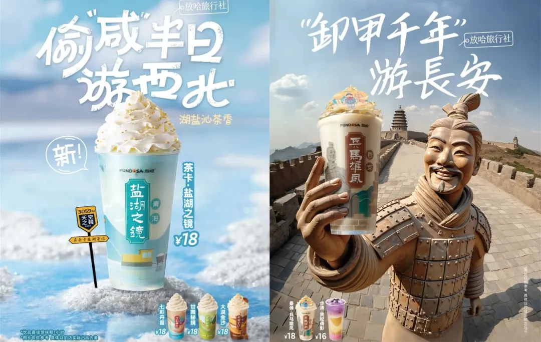 比如今年放哈推出“旅行社系列”產品,其中“茶卡鹽湖之境”定價18元/杯。雖然比基礎款稍貴,但依然躋身西北市場銷售前10。