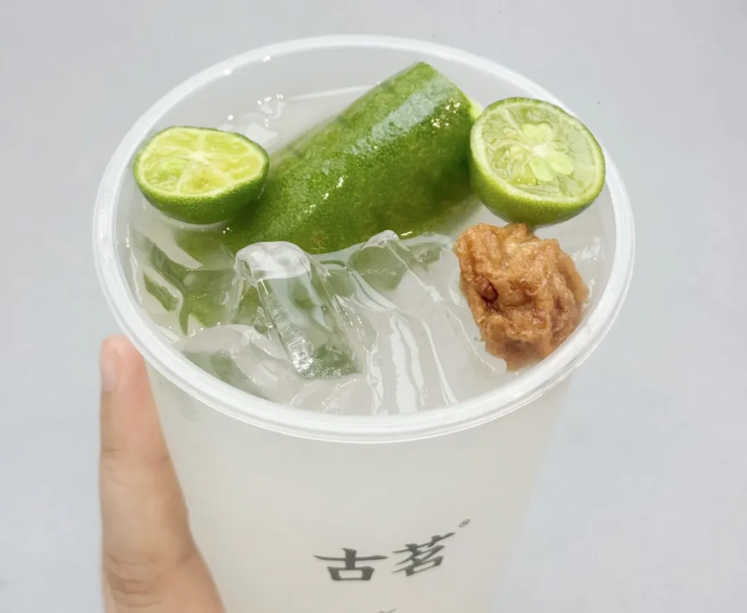 古茗的話梅檸檬水是在檸檬、小青橘的清香風味上,增添幾粒鹹香話梅元素豐富口感。酸、甜、微鹹多種層次在口中迸發,格外生津止渴。
