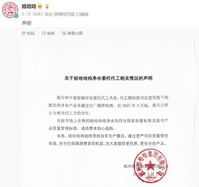 前兩天,“娃哈哈客服回應純淨水由今麥郎代工”話題登上微博熱搜,引發熱議。