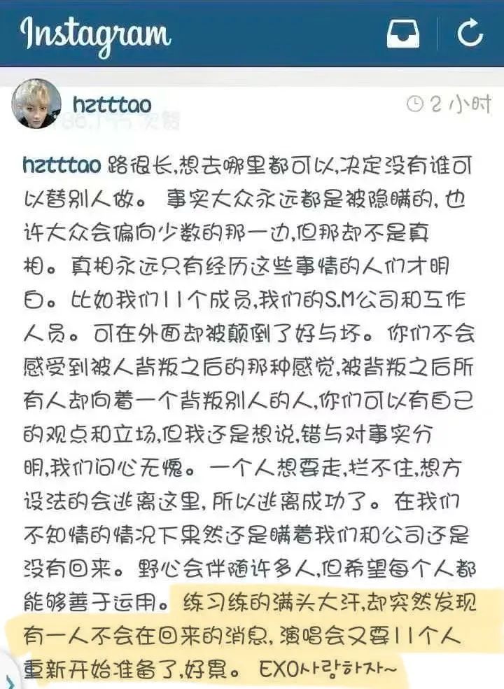 離開韓國後的韓庚,片約無數,一躍成為身價千萬的頂級明星。也許是受前輩影響,Kris決意退團,黃子韜怒火攻心,在社媒上髮長文,指責Kris是“叛徒”。