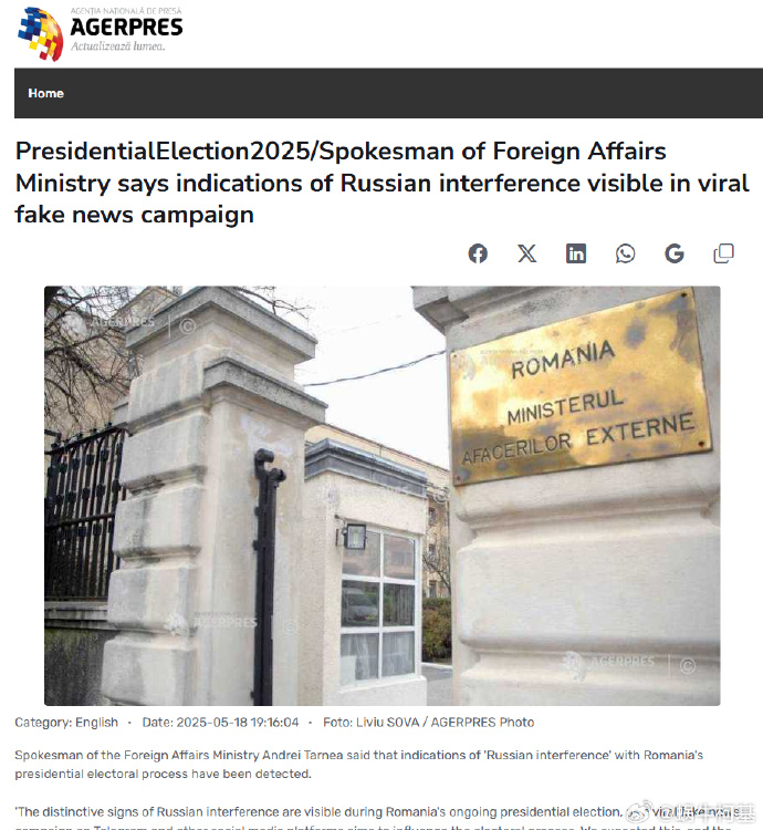 果然來了,羅馬尼亞外交部稱第二輪選舉發現俄羅斯干預的現象。