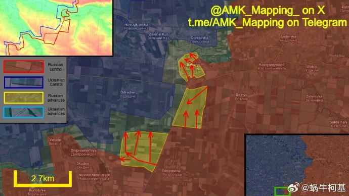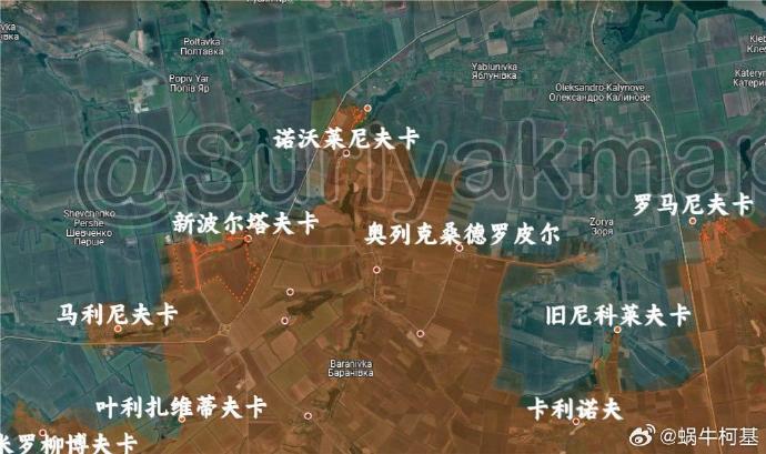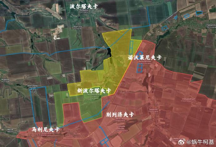 3、奧切列季涅:俄軍控制了新波爾塔夫卡及其周邊陣地,還繼續向諾沃萊尼夫卡以北推進。此外,俄軍成功進入了羅曼尼夫卡。