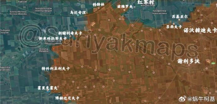 4、紅軍村:俄軍攻佔了新米科拉耶夫卡以南和科特利亞里夫卡以北的一系列陣地。此外,俄軍還向博赫達尼夫卡以西推進。但烏克蘭軍隊成功收復了霍里克霍夫的大部分地區。