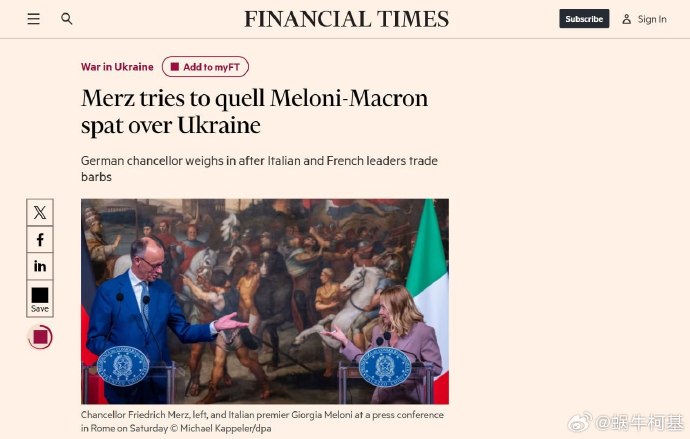梅爾茨試圖緩和意大利總理梅洛尼和法國總統馬克龍之間因烏克蘭問題而產生的“激烈外交爭吵”。