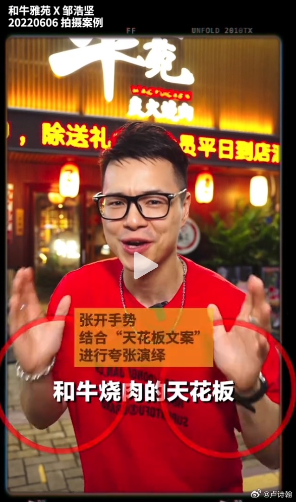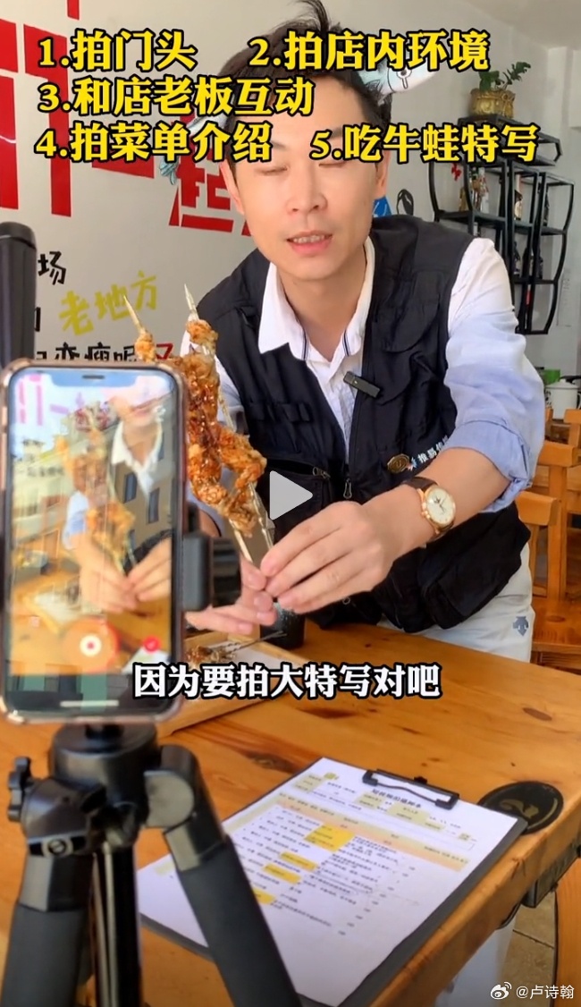 人家又不是真吃,到店了把菜一擺,拍兩個吃菜的鏡頭,説完文案,差不多就可以下一家了。
