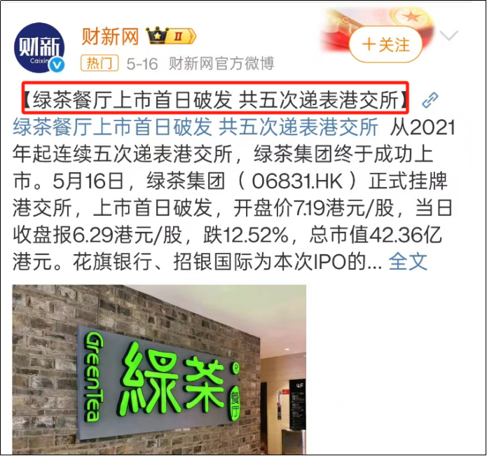 4年嘗試了5次,綠茶餐廳終於圓了自己的上市夢。