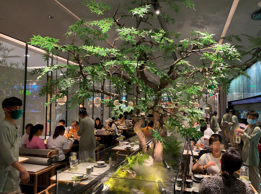 還在不同餐廳花高價打造了顏值頗高的主題:桃花船宴主題可以坐在船上吃飯,書院主題彷彿置身江南幽靜書院、清風竹影主題把餐廳搬進一片片竹林中…