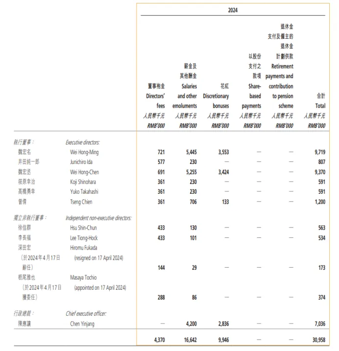 相比2023年,魏宏名、魏宏丞的年薪分別增加了約200萬、191萬元,增幅分別達到了25.9%、25.6%,均要高於同期的營收和歸母淨利潤增速。倒是陳應讓從1300多萬年薪降到了700來萬,不過即便如此,相比於統一的高管年薪,還是要高出不少。