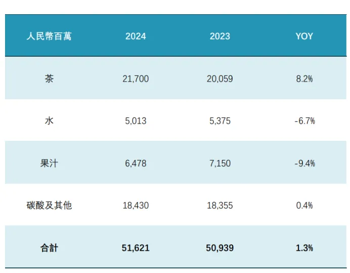 從康師傅發佈的公告來看,806.51億營收中,方便麪佔284.14億元,同比減少1.3%,佔營收大頭的飲品有516.21億元,雖然微增1.3%,但其中僅有茶飲品的營收增速還可以,達到8.2%,水和果汁飲品分別下滑了6.7%、9.4%,碳酸飲料營收基本持平,而其它類產品雖然營收僅有61.5億元,但降幅卻是最大的,達到了10.4%,是拖累公司整體營收的最重要原因。