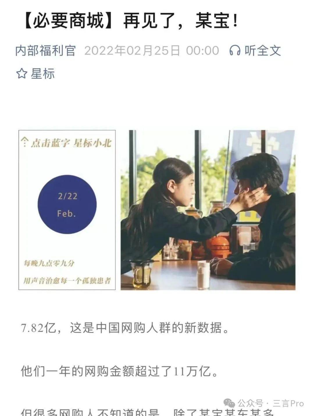 頗具諷刺意味的是,之前幾年,幾乎所有公眾號都被必要(或其代理)諮詢過投放。投放文章很多都是“再見了,某寶!”、“再見了,某多多!”的標題,文章底部是掃描二維碼下載必要。