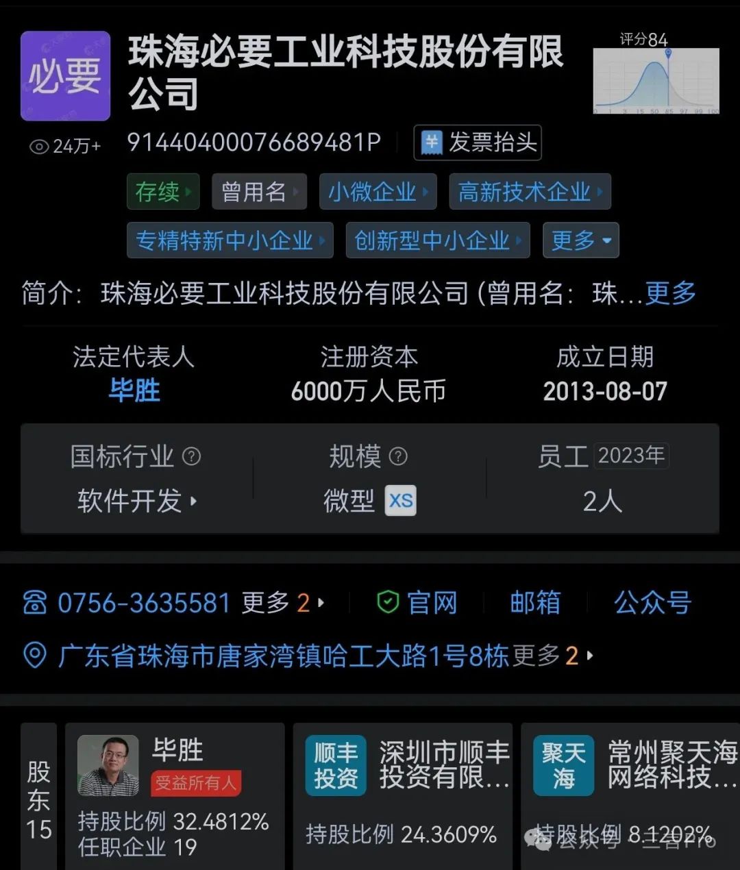 據天眼查顯示,必要App運營公司為珠海必要工業科技股份有限公司。該公司成立於2013年8月7日,註冊資本6000萬元,法定代表人為畢勝。