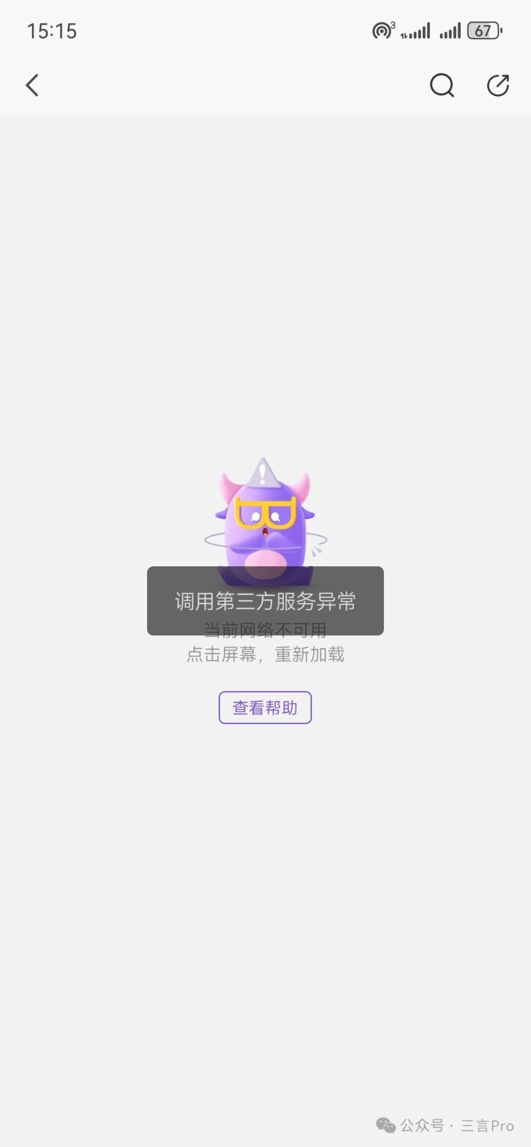而在App的“分類”標籤中,所有商品均無法查看,顯示“調用第三方服務異常”。