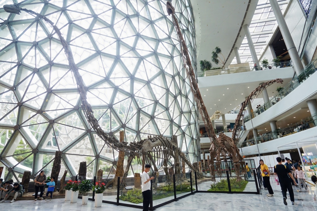 上海自然博物館的B2中庭的恐龍骨架 本文圖片除單獨標註外 均為主辦方 供圖