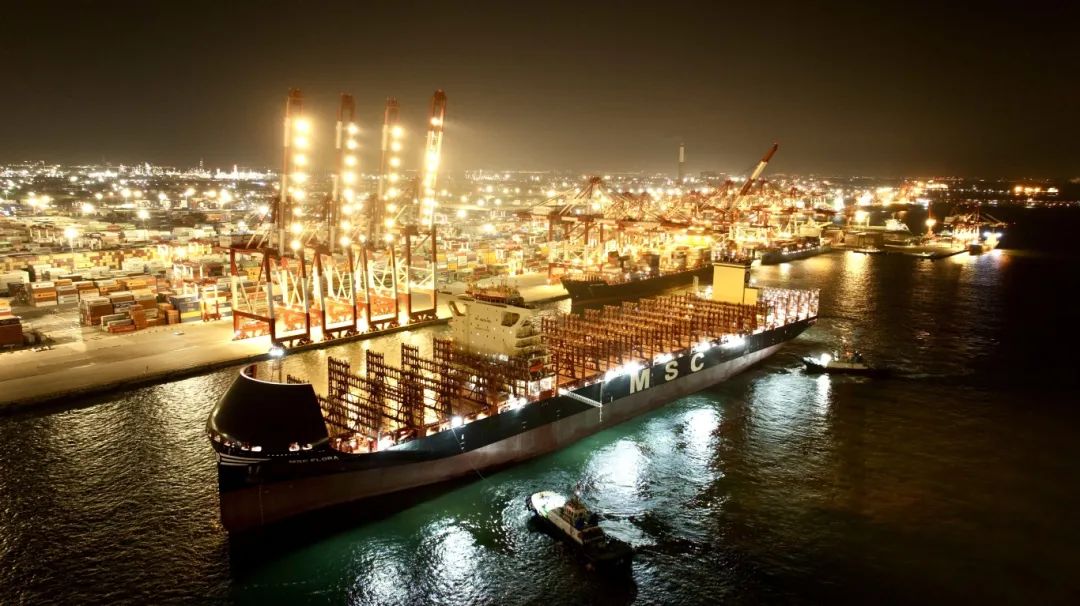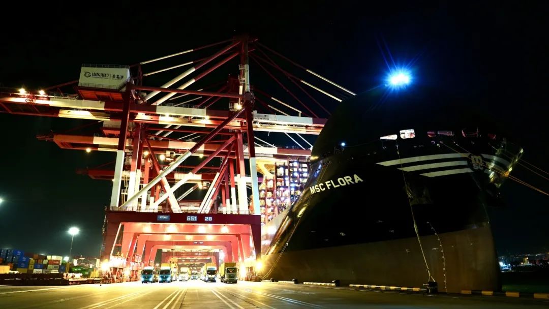 作為當前國際航運市場的主力船型之一,“地中海弗羅拉” 輪全長355米,最大載箱量達11552標箱。據瞭解,該航線計劃部署8條船舶運營,周班運行,港序覆蓋青島、上海、寧波、南沙、新加坡、那哈瓦舍瓦、達曼、哈邁德港、朱拜勒、巴林、科倫坡等重要樞紐港口,精準構建起東亞與中東、南亞之間的海上黃金物流通道。首航作業中,青島港以高效協同能力完成2800標箱的裝卸任務,彰顯了港口與航運企業的深度協作效能。