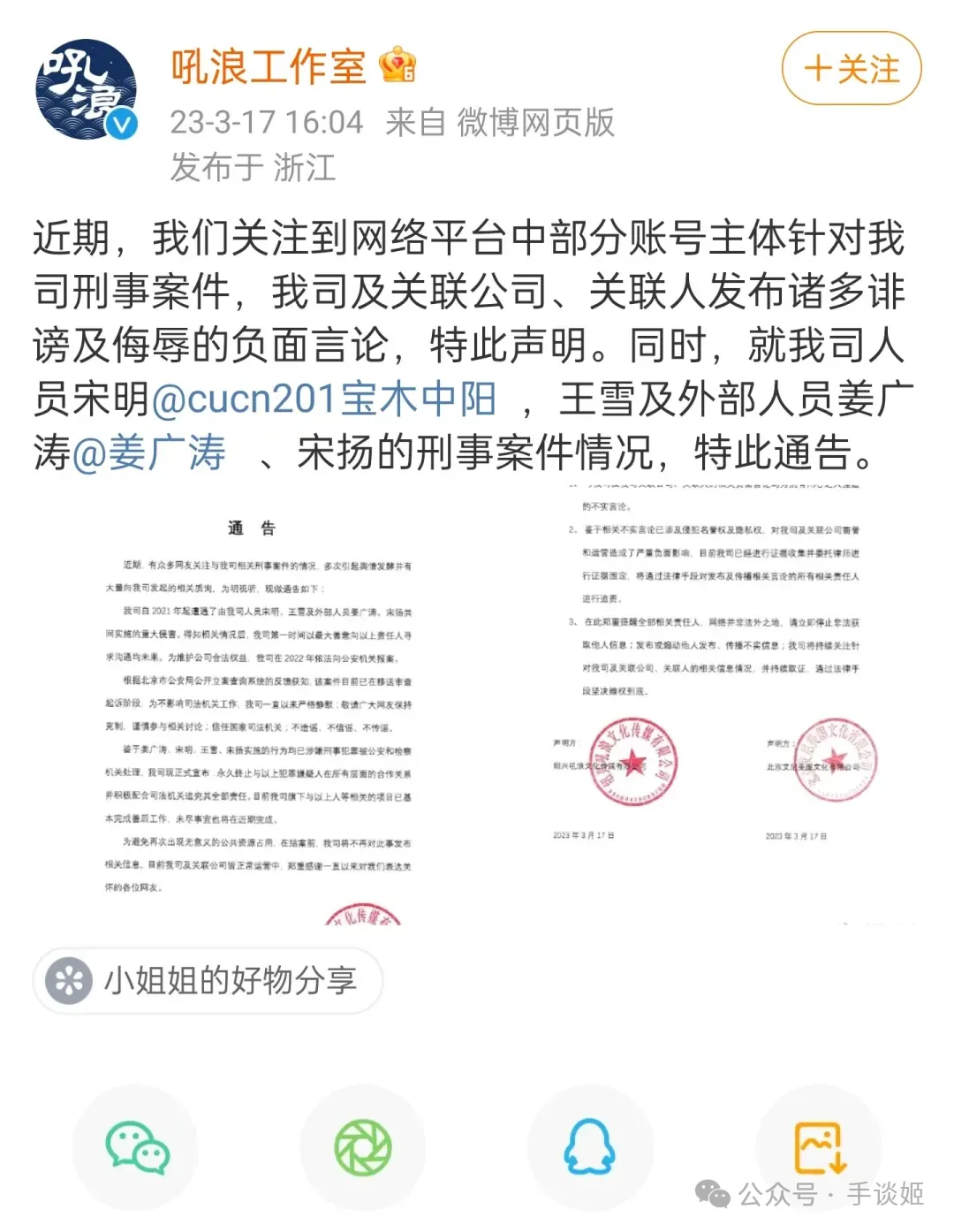 姜廣濤暫時洗脱了罪名,恢復了日常生活,而吼浪工作室目前社交媒體也沒什麼動靜,這件事情大概就這樣畫上句號了吧。
