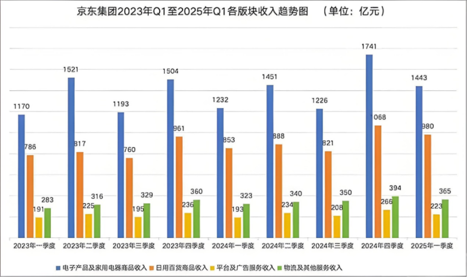 其中,京東最為核心的帶電品類(3C)和日百品類,都實現收入同比雙位數增長,同比增速分別為17.1%、14.9%。