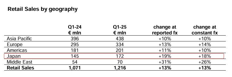 一季度,Prada集團日本市場銷售額大幅飆升 圖源:財報