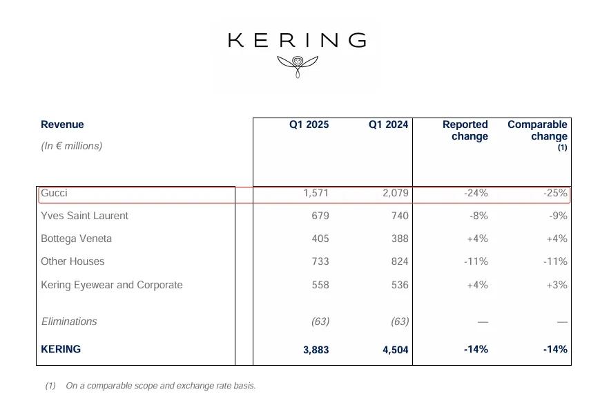 開雲集團主品牌Gucci一季度表現不佳 圖源:財報