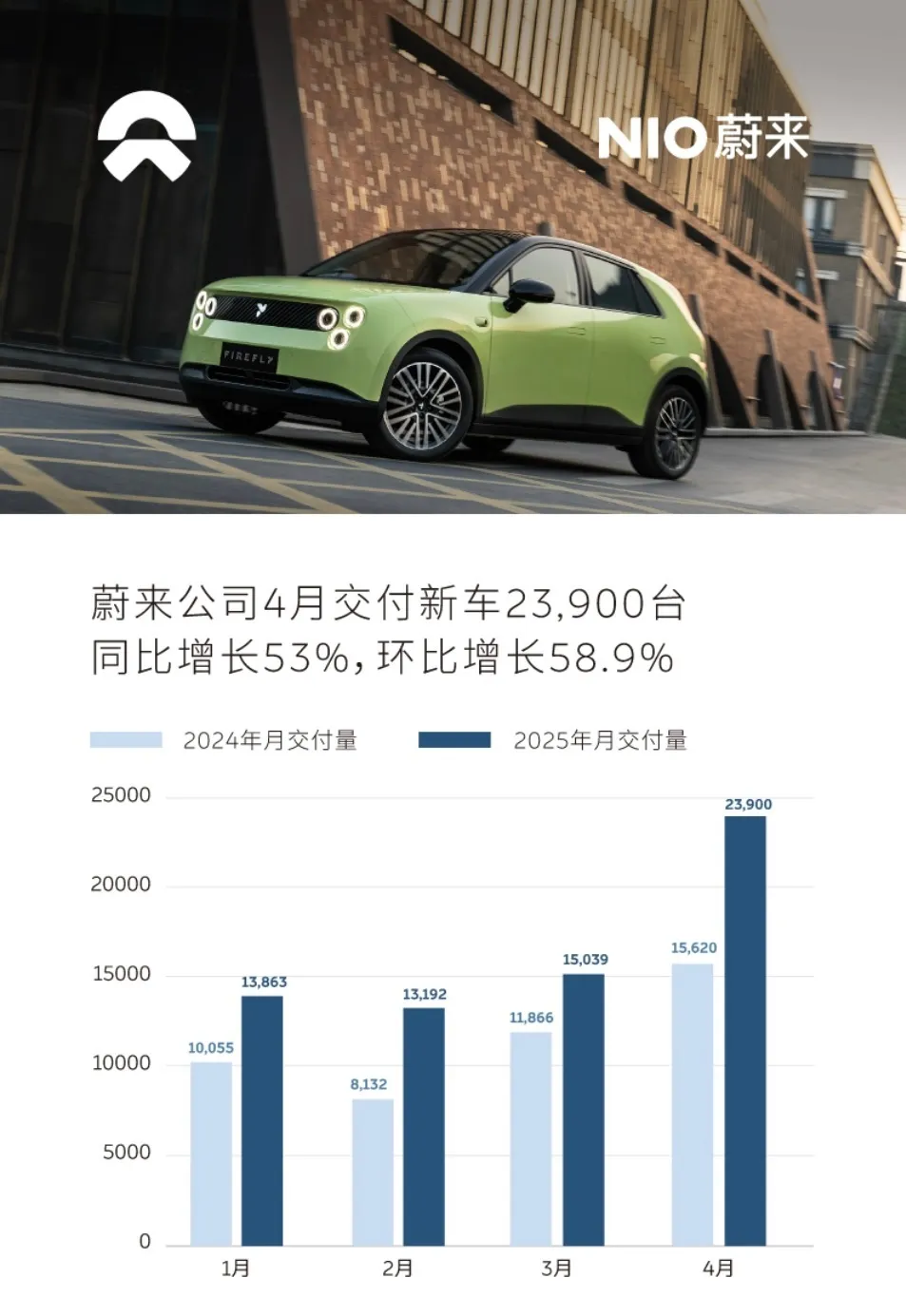 只不過2025年已經過去了完整的四個月,蔚來的銷量壓力可以説有增無減。