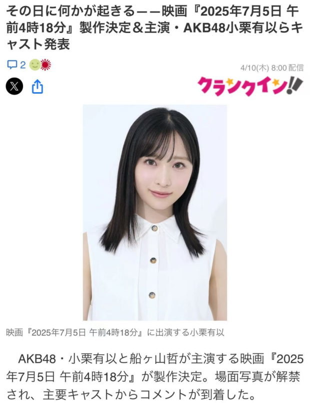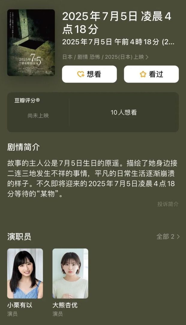 畢竟日本民眾,本來就因為島國多災的屬性,對這類“末日恐怖”特別上頭,不僅不忌諱,還早早就按預言拍攝了恐怖電影《2025年7月5日午前4時10分》,主演還找來AKB48成員,趁着話題發酵大撈一把。
