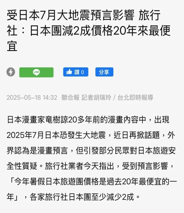 迅速火出圈後,龍樹諒於2021年,再度拋出一個更震撼的預言:“2025年7月5日,日本將迎來巨大災難,請大眾做好心理準備。”(甚至預言精準到4點18分)