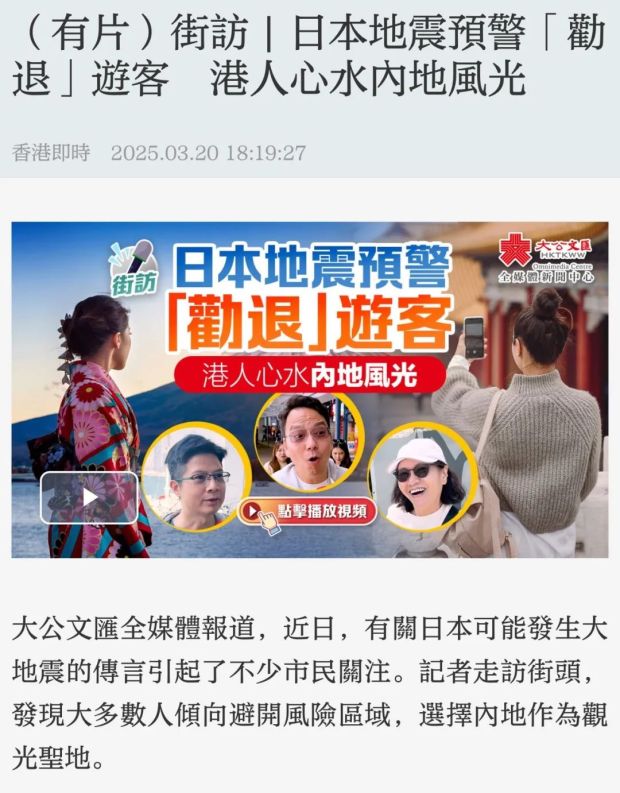 為了減輕“末日傳言”對日本旅遊業的傷害,日本已開始動用國家力量對抗,不僅官方媒體頻繁呼籲“不要輕信非科學言論”,還在中文互聯網上抽絲剝繭,找出傳播源頭重點批判。
