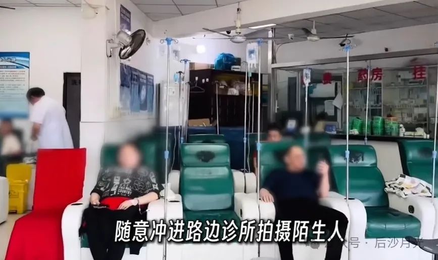 社區衞生室,她也不管別人願不願意,進去就拿着手機一通拍,喧譁吵鬧。