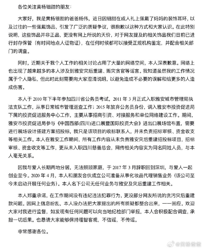 2011年,黃楊家裏的居住條件是很普通的,根據黃楊父親楊偉的自述,他是在2011年3月入職雅安城管局。
