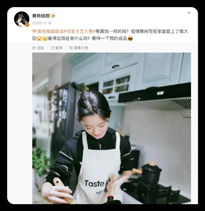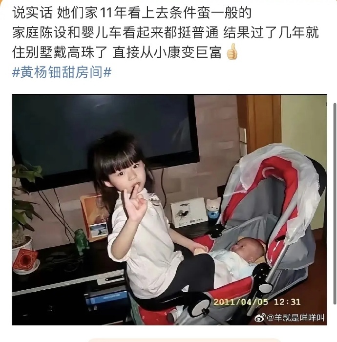 2019年,黃楊鈿甜偶爾露出了她家的大別墅。豪華,大豪華,但目前網友還沒有扒出來房子究竟是哪年購買的。也是這一年,12歲的黃楊鈿甜加入了嘉行公司。2020年,疫情期間,黃楊鈿甜宅家烹飪,曬出了家裏的大廚房。同年,父親楊偉註冊了一家生物科技公司,註冊資本2000萬。不知道是不是實際繳納。疫情復工後,黃楊鈿甜的影視活動開始增加,活躍在一系列偶像劇裏,慢慢朝小花進發,接到一些主演的角色。(《致我們的1999年》,《五福臨門》)