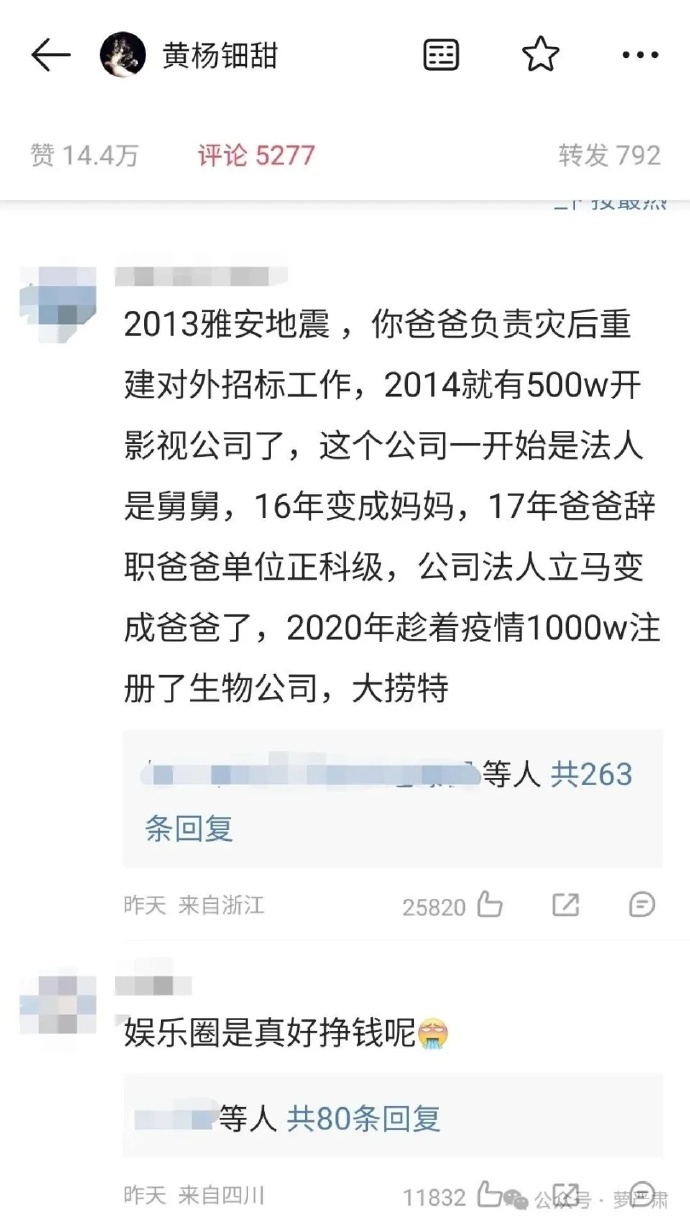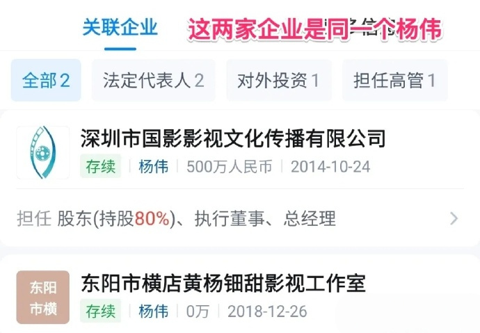 到2014年,楊家突然就有錢了,楊家在深圳註冊了一家影視公司,註冊資本500萬(不曉得是不是實繳)。