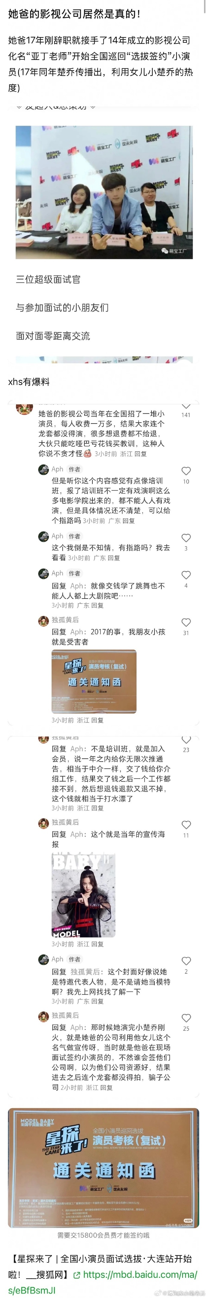 女兒入圈後,楊偉很快辭去公職,以影視公司“亞丁老師”的身份,開始全國大巡迴,招募“童星練習生”,也就是找一些條件尚可的孩子,每個人收取一萬多的會員費,然後表示會給他們進圈做童星的機會。很多家長帶着孩子去交錢籤合同,但最後一個演出機會都沒有,屬於不了了之的中介費。