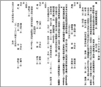 二月十六日這一天,乾隆皇帝一日三頓。先在船上用早點和早膳,菜品中有大量的肉食和點心。晚膳在天寧寺行宮,菜品較早膳更加豐富。當日晚晌的菜品很少。縱觀其一日所食,不可謂不豐富,既有精緻的點心,也有普通的吃食。既有冰糖燉燕窩一類的高檔食物,也有爆肚這樣的下水。這一天的膳食十分注重葷素搭配,點心正餐結合。乾隆似乎保留了滿族人食用豬肉的習慣,同時愛吃筍、米糕等南方食物,一天兩餐都吃了竹筍。