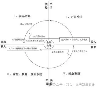 這個模型強調:市場經濟的底層邏輯,是家庭人口再生產與企業產品再生產的對立統一運動。家庭與企業,是兩個組織屬性不同的產權主體和市場資源配置者,由此成為相互交易、互為供求的經濟決策主體,在此基礎上產生的商品流、貨幣流、信息流、均衡價格、資源配置,只是兩種生產對立統一運動[3]的具體表現形式。