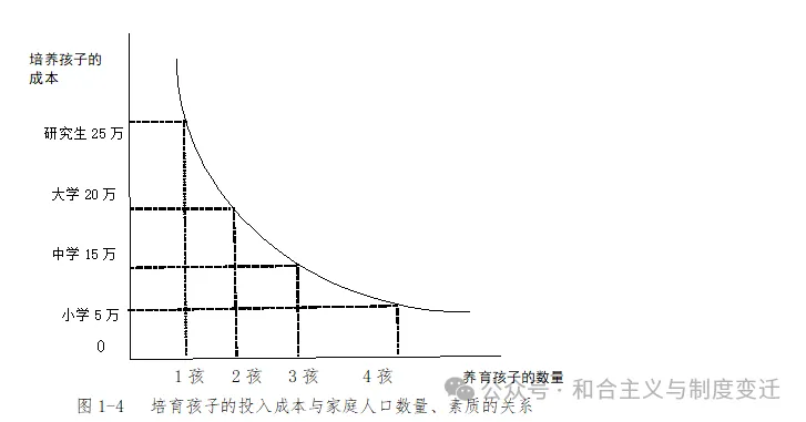 顯然,在既定收入下,如果散養孩子,家庭培育的孩子數量邊際遞增,而平均對每個孩子投入的教育成本邊際遞減;如果精養孩子,則培育每個孩子的邊際成本遞增,可培養的孩子數量邊際遞減。