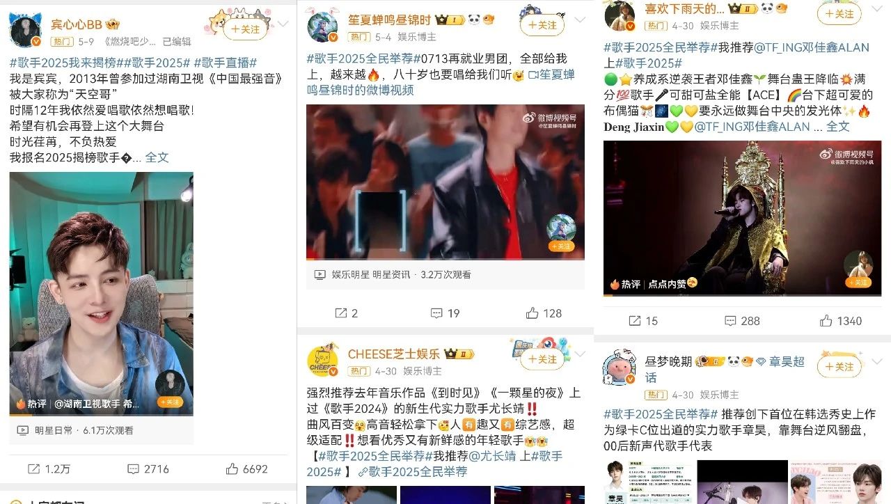 社交平台上依然有歌手不斷髮出報名信息,以表達自己想登上《歌手》舞台的心,也不斷有網友在推薦自己認為可以登上舞台的歌手。或許比起最後的歌王之爭,對於《歌手2025》來説,在首發陣容不盡如人意下,觀眾對於新血液和能力者的渴望更甚上一季,《歌手2025》在匹配好“流量”之後,選人能夠再大膽一些、再精細一些。