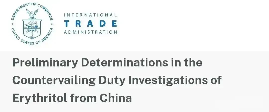 就在同一天(5月13日),美國商務部宣佈也將對中國生產的赤蘚糖醇(Erythritol)產品加徵反傾銷税,並同時啓動對中國赤蘚糖醇的新一輪反補貼調查。