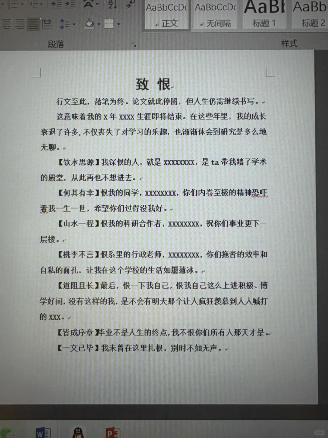 以前寫畢業論文都是“致謝文學”,現在沒有謝了,只有恨。