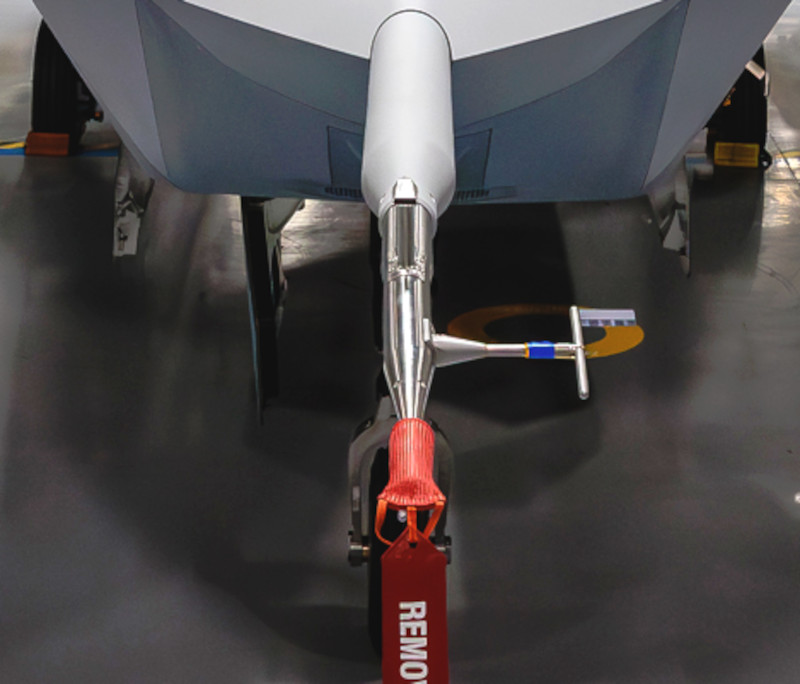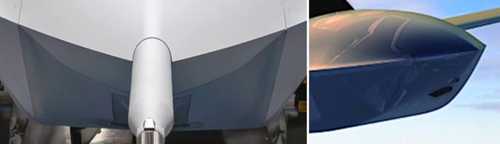 儘管被飛行測試數據探頭部分遮擋,但在機頭前部下方有一個顏色明顯不同的區域,上面似乎有一個格柵以及一個位於其上方的額外部件,其用途目前尚不清楚。通用原子能公司過去發佈的CCA設計渲染圖中,在相同的大致位置展示了一個梯形窗口,這一特徵通常與前向光電和/或紅外傳感器系統相關聯。