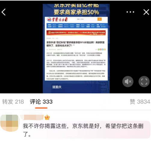 現在就有人表示,已經不敢發表關於京東的評論了,説的好打臉,説不好被黑。