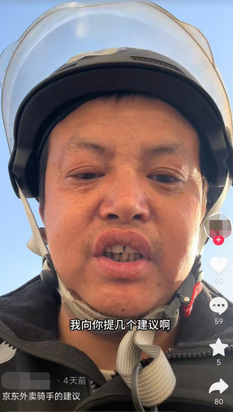 再舉個例子,下面這位騎手,出於自己的工作方便,相當理性的給京東外賣提了幾點改進意見,包括希望送外賣時有更精準的定位。