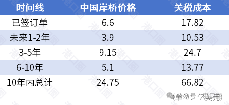 加徵關税情況下,美國港口所需承擔的關税成本