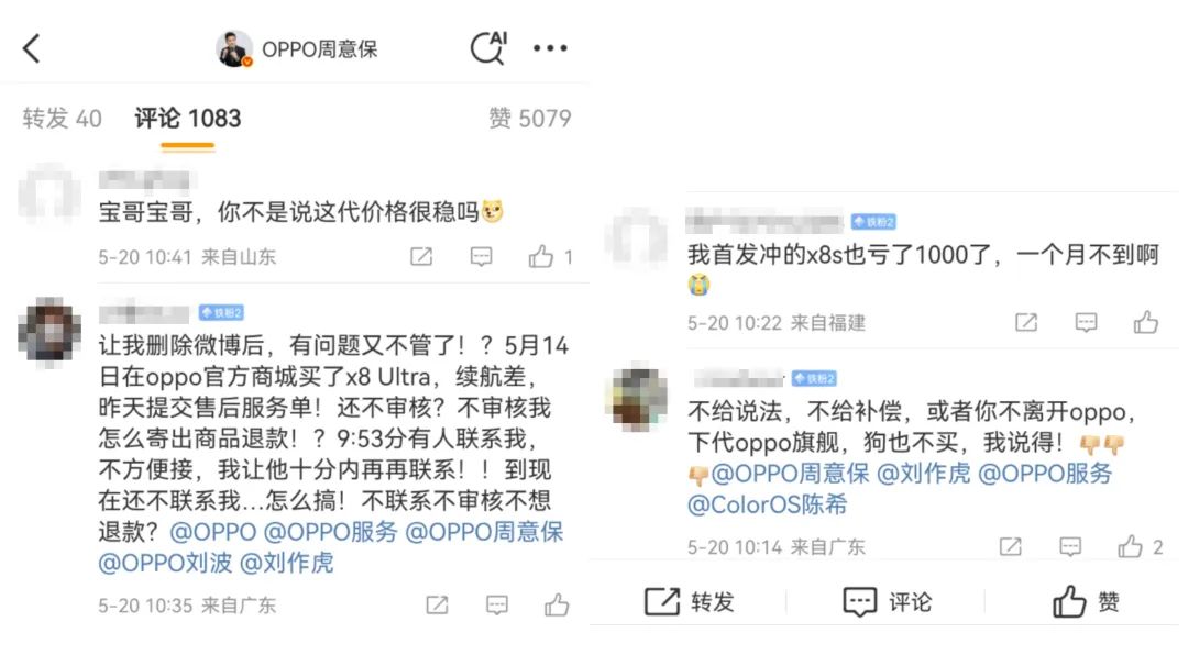 周意保在微博遭到用户“圍攻”的原因其實很簡單。今年4月,OPPO全新旗艦Find X8 Ultra系列正式發佈,在發佈前,周意保也通過個人社交平台為新品預熱。