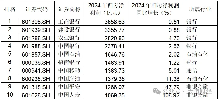 表:2024年上市公司淨利潤規模前十
