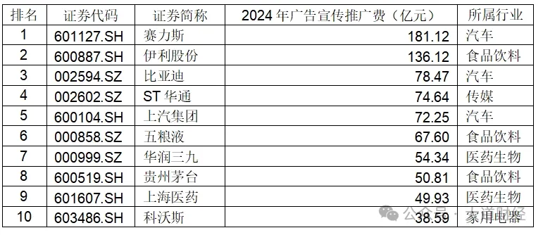 表:2024年上市公司廣告費規模前十