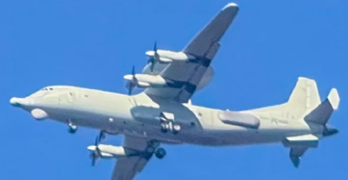 機身側面的方面方形罩明顯比空警500的大,有説法這個是安轉的UFH波段雷達,增強對隱身目標探測能力,但這個波段在海面用可以,但在陸地雜波干擾太重,最多也就是輔助性搜索的。