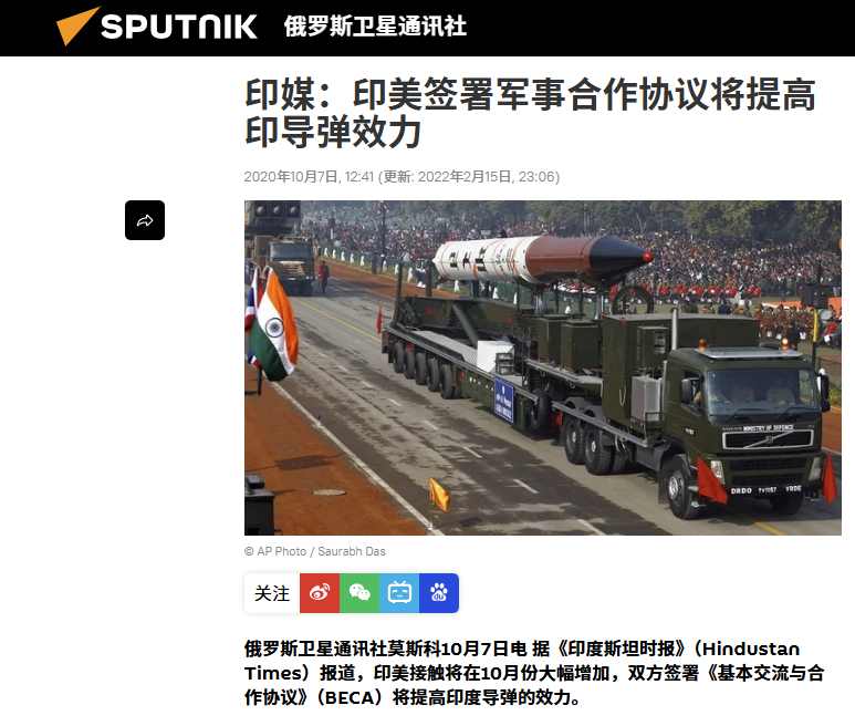 再者,即便中國為巴基斯坦提供了雷達和衞星支持,這也並不奇怪,難道你阿三就沒用美國衞星?早在2020年,印度就和美國簽署了《基礎防禦協議》,其中就包括美國向印度提供衞星和雷達數據支持。這豈不是意味着,美國的衞星,更加理所當然的介入了衝突!